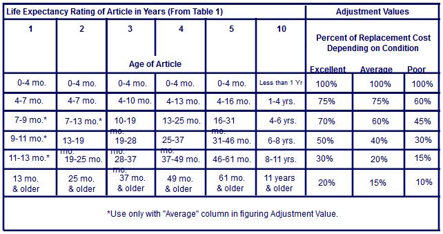 - Multiply this adjustment value by the replacement cost to determine the adjustment amount.